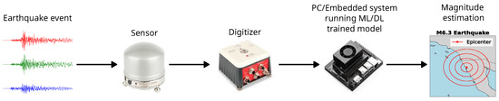 In the field of seismology, the exponential growth in data availability and computational processing has enabled the application of ML and DL algorithms to various tasks, including event detection [15,16,17,18,19,20], phase detection [21,22,23,24,25,26], ground motion estimation [27,28,29,30], and magnitude estimation [3,4,7,31,32], among other applications.