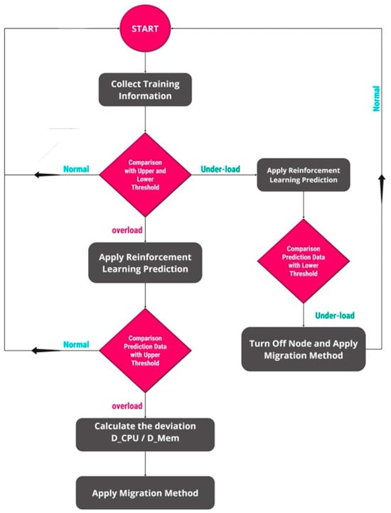 The chosen architecture was based on deep Q-networks (DQNs). This model uses a neural network to approximate the value of taking certain actions (i.e., migrating resources) in different states of resource utilization. The system continuously adapts by learning how actions influence future states and rewards. Since server resource utilization is immediate, predictive technology can effectively avert unnecessary virtual resource migrations. A predictive migration trigger strategy, driven by a DQN algorithm, is used to evaluate if server resource usage exceeds or falls below a predefined threshold.