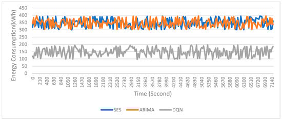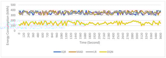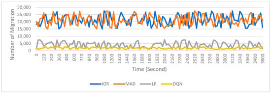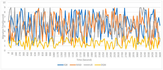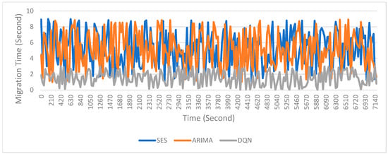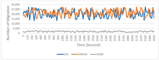 The proposed DQN with these time series methods is also simulated for about two hours for the scenario listed above. Figure 11, Figure 12 and Figure 13 show the energy consumption, number of migrations, and migration time.