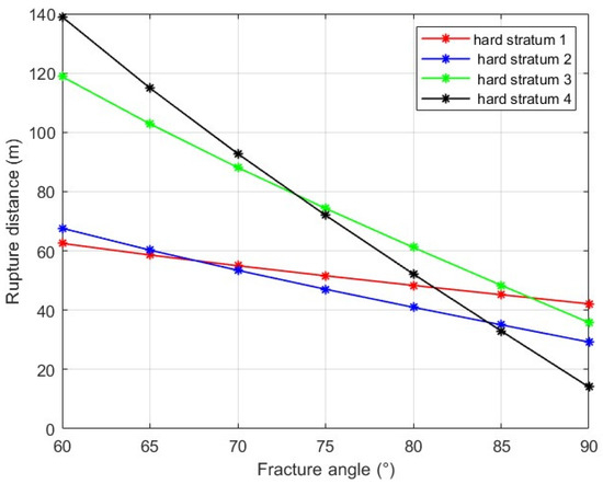 Variation curves of hard stratum rupture distance under different rupture angle conditions.