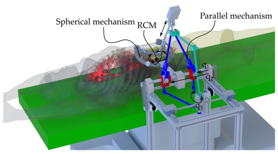 - Pisla, D.; Plitea, N.; Gherman, B.; Pisla, A.; Vaida, C. Kinematical Analysis and Design of a New Surgical Parallel Robot. In Computational Kinematics; Kecskeméthy, A., Müller, A., Eds.; Springer: Berlin/Heidelberg, Germany, 2009. [Google Scholar]