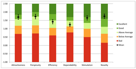 The interaction was evaluated using the Short User Experience Questionnaire (UEQ) [26]. According to the results presented in Figure 12, the users considered the system useful and efficient for the job, as evidenced by the Mean Pragmatic Quality (practical and real-world applicability) score of 1.29. It should be mentioned, nevertheless, that users needed multiple repetitions to properly become used to the HoloLens’ functionality. The Mean Hedonic Quality (utility) score was 1.45, suggesting that users found the interaction enjoyable and engaging. Finally, the Overall Mean score was 1.32, reflecting an overall positive user experience with the system.