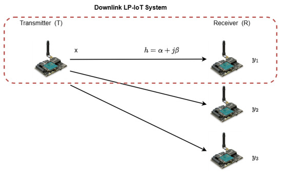 This section describes the system model used for this study that set the context of the research problem and the followed process. We consider a conceptual communication model for the LP-IoT system in which a signal is transmitted through a wireless channel and received by the receiver IoT device, which can be represented as follows: