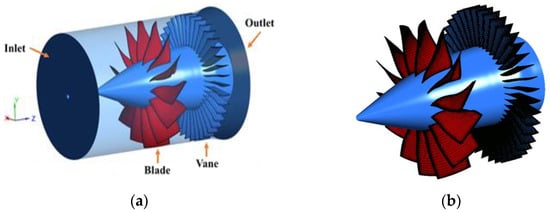 Full-annulus computational domain and mesh for RANS method: (a) computational domain; (b) computational mesh.