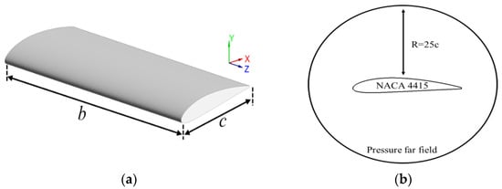 Geometric model and computational domain of NACA 4415 wing: (a) geometric model; (b) computational domain.