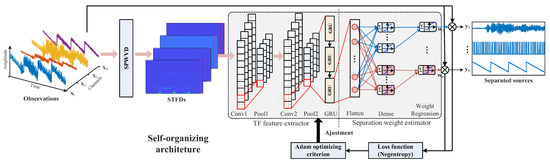 - High accuracy and stable acquisition of the separation weights with the self-organizing network: The above learned features were provided to the separation regressor, and the optimization process can be achieved using powerful network optimizers such as Adam rather than a traditional quasi-Newton method. Hence, it can avoid oscillation and provide a faster convergence and higher accuracy.