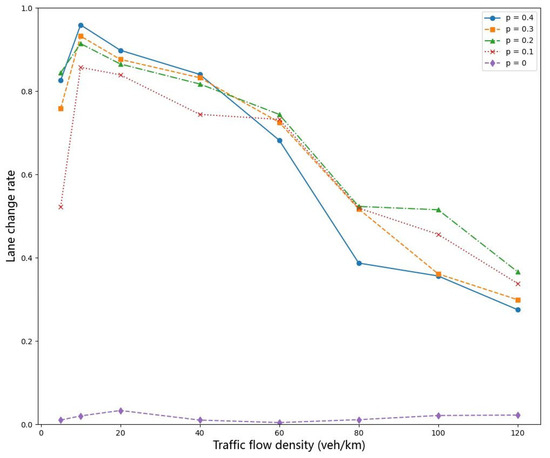 Figure 9. Traffic flow lane-changing rate—density diagram.
