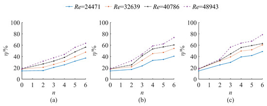 The observed increase in energy dissipation rate with higher Reynolds numbers aligns with previous studies, which have demonstrated that turbulent flow conditions, typically associated with higher Reynolds numbers, enhance energy dissipation due to increased mixing and momentum transfer [