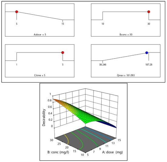 Results from the RSM-based response optimization exercise for MO adsorption using ZIF-67@BNT.