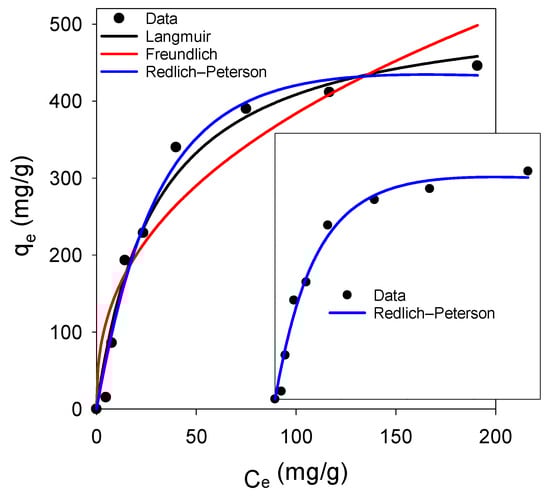 - Wang, J.; Guo, X. Adsorption isotherm models: Classification; physical meaning, application and solving method. Chemosphere 2020, 258, 127279. [Google Scholar] [CrossRef]