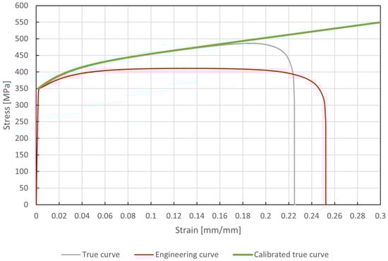 The true stress–strain curve correction (see Figure 3) was based on the following three-step process: