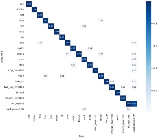 For the detection of static hand gestures, the Hand Gesture Recognition Image Dataset (HaGRID) is utilized [52]. This dataset is a comprehensive collection of images specifically designed for hand gesture recognition tasks, suitable for both image classification and detection purposes. The HaGRID dataset has a total size of 723 GB and includes 553,991 FullHD RGB images categorized into 18 different gesture classes. The dataset features 37,563 unique individuals, with participants ranging in age from 18 to 65 years.