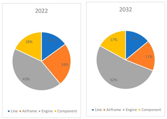 Aircraft maintenance is crucial in ensuring aircraft reliability, safety, and durability in the aviation industry. In 2022, IATA [2] published a comprehensive report on maintenance cost data. Thirty-one airlines contributed to this report; more specifically, 32,070 aircraft were analysed. The total amount the airlines spent on Maintenance, Repair and Overhaul (MRO) was $76.8 Billion, representing approximately 10.9% of the total airline operational costs ($722 Billion). Another interesting observation from this report was the Global MRO Spend Forecast from 2019 to 2033. Airlines tend to invest more and more money yearly to improve maintenance. Cranfield University [3] estimated the economic impact of an aircraft being out of service due to unscheduled maintenance. The estimated daily losses are approximately £200,000 ($250,560 (calculated using an approximate exchange rate of 1 GBP = 1.253 USD)). This calculation is based on reasonable average estimates, for example, a narrow-body aircraft with 200 passengers, assuming it makes eight daily journeys, and each ticket costs £100 ($125.28). The total losses will be £160,000 ($200,448). Similarly, for a wide-body aircraft with 350 passengers, assuming it makes one journey, and each ticket costs £800 ($1002.24), the total losses will be £280,000 ($350,784). Additionally, Cazzato et al. [4] highlighted the importance of a fully operational aircraft. A 747-cargo liner at Cargolux Airlines S.A. can be in the air for 19 h/day. In other words, an aircraft on the ground produces costs instead of income.