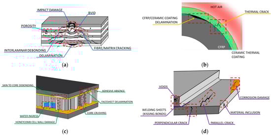 - ○ Wings: Delamination, fibre/matrix cracking, and impact damage.