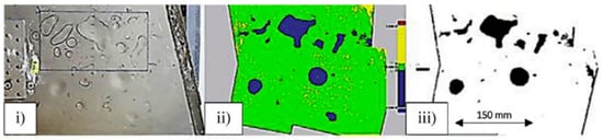 Penetrant [37,38,39] testing is an easy-to-use, highly sensitive inspection method that is particularly effective at detecting surface-opening defects. While the technique is simple to use and effectively identifies surface anomalies, it is restricted to detecting only those defects that are exposed on the surface, lacking the ability to detect subsurface or near-surface defects. Malandrakis et al. [45] aimed to develop an automated penetrant inspection system using a commercial UAV equipped with a wide-field-of-view camera and an ultraviolet torch to inspect wing panels by flying pre-defined trajectories. Traditional manual penetrant flow inspections are typically time-consuming, taking 1 to 4 h, depending on the object’s size. This study introduced an automated, cost-effective, and time-efficient solution for real-time image processing. The proposed non-destructive inspection system detected defects of various sizes, ranging from 2.54 mm to 12.7 mm. The findings indicated that post-processing could enhance reliability, though it would add approximately 2 min to the process. Additionally, further development of the computer vision algorithms was needed to improve the automatic classification and size estimation of defects.