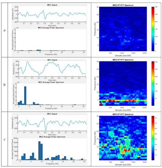 Using feed-forward neural networks on the combined values of MEG signal values and ST-FFT gave encouraging results, achieving a classification accuracy close to 92%. The one-dimensional convolution neural network (1D-CNN) with four layers achieved an accuracy of 90.4% but with significantly less training time compared to that of the FFNNs, with a computation cost reduction of up to 52%. This means that there is potentially significant room for improving the performance of the 1D-CNN model through a more thorough investigation and fine-tuning of the network’s parameters (such as the number and size of convolutional layers, filter size at each layer, and the number and placement of pooling and ReLU layers).
