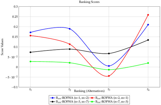Seikh and Mandal [6] introduced p,q-quasirung orthopair fuzzy sets (p,q-QOFSs), which give decision-makers the flexibility to choose different powers for MD and ¬MD, i.e., (, such that p and q could be the same or different). A similar approach appeared in [7] under the name of n,m-rung orthopair fuzzy sets (nm-ROFSs), where are in . This change allows for a more flexible encoding of information that accommodates diverse preferences and needs in decision-making contexts. All the aforementioned studies focus on the application of MD and ¬MD while overlooking the impact of the neutral degree, which is a significant factor during the DM process as well.