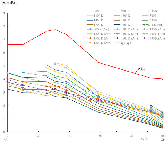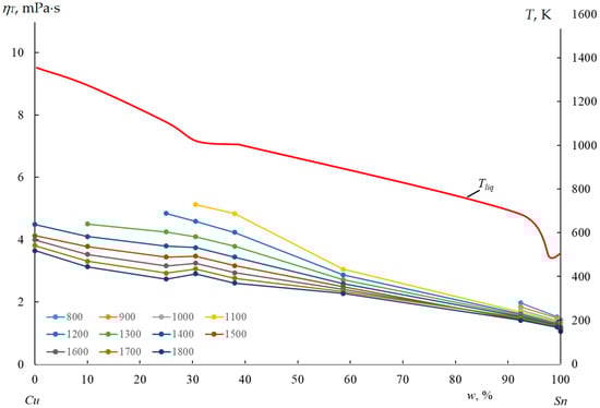 - Mao, T.; Bian, X.; Xue, X.; Zhang, Y.; Guo, J.; Sun, B. Correlation between viscosity of molten Cu-Sn alloys and phase diagram. Physica B 2007, 387, 1–5. [Google Scholar] [CrossRef]