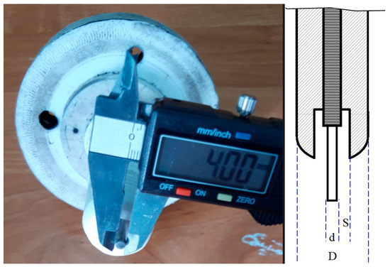 • electrode sample № 2: distance between the metal electrode and its insulation—S = 3 mm; electrode insulation diameter, depending on the diameter of the metal electrode—D = 4 × d.