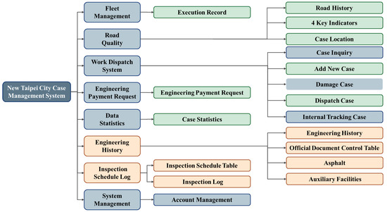 The case management system in New Taipei City includes multiple modules, ranging from fleet management to system administration. These modules are divided into various subsystems based on their functions to enhance the efficiency and accuracy of case management. The system architecture is detailed as follows: