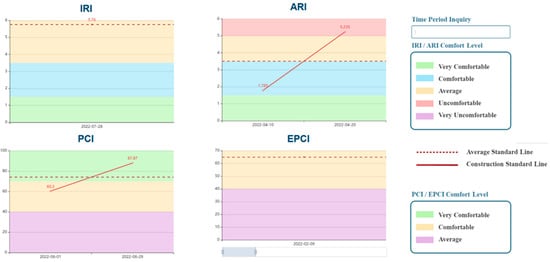 By integrating these inspection data, the information platform provides comprehensive data analysis for the entire road network, allowing management units to effectively monitor road conditions and identify potential issues. Through discussions and analysis of these indicators, management units can more accurately determine which sections need priority repair, thereby enhancing the effectiveness of subsequent road maintenance and ensuring a safer and more comfortable driving environment (Figure 9).