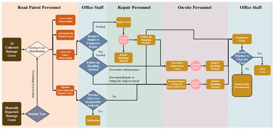 The complete work order process for road damage cases comprises case reception, on-site work, and report submission. Typically, road damage is reported by patrol personnel or detected and uploaded by AI inspection equipment into the management system.