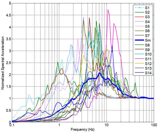 After the AF is calculated for a particular profile, k, and for 14 seismic excitations, the average site amplification factor AFm is computed for the soil profile so that