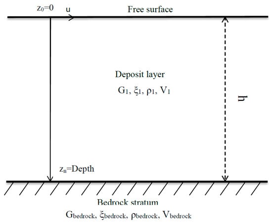 which is the thickness of the first layer (deposit layer), h1, with the bedrock being considered as a half-infinite space (see Figure 2).