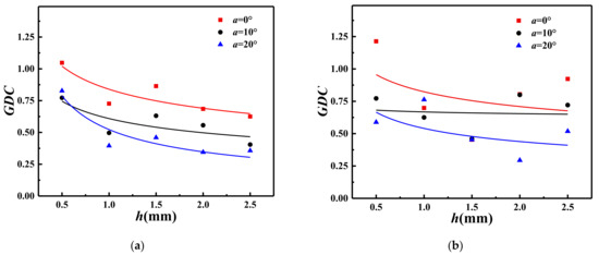 Figure 20. The relationship between experimental GDC and h. (a) Rock 1, (b) rock 2.