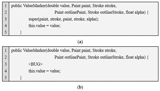- Just, R.; Jalali, D.; Ernst, M.D. Defects4J: A database of existing faults to enable controlled testing studies for Java programs. In Proceedings of the 2014 International Symposium on Software Testing and Analysis, San Jose, CA, USA, 21–25 July 2014; pp. 437–440. [Google Scholar]