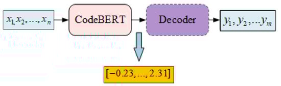 The fine-tuning of the CodeBERT model takes as input the context of the preprocessed buggy lines and aims to learn the buggy code context representation. In the process of fine-tuning, the CodeBERT model is trained to understand how to translate the changed context into the fixed code. The context is denoted as and the correct fixes are denoted as , where and represent tokens of the context and the correct fixes, respectively. and represent the lengths of the context and the correct fixes, respectively. The weight of the Seq2Seq model is denoted as . By updating , the CodeBERT model can be fine-tuned to maximize the average likelihood:
