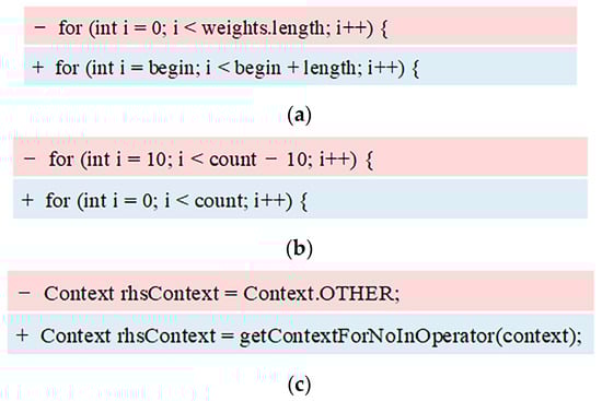 - Wen, M.; Chen, J.; Wu, R.; Hao, D.; Cheung, S.C. Context-aware patch generation for better automated program repair. In Proceedings of the 40th International Conference on Software Engineering, Gothenburg, Sweden, 27 May–3 June 2018; pp. 1–11. [Google Scholar]