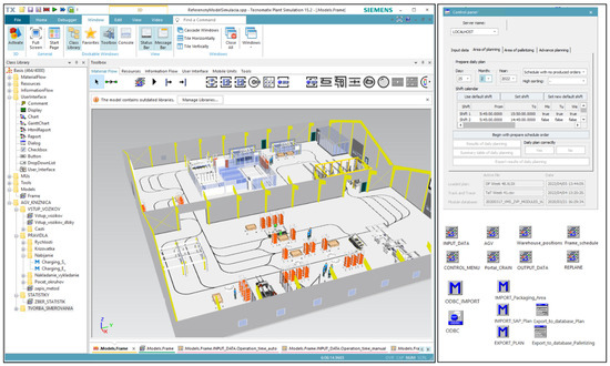 By applying the proposed scheduling system, various variants of the production schedule were created and verified, and each plan was evaluated using a sanction function. The capacity utilization of production and logistics facilities was also checked. The experiments were based on real data obtained from production using a monitoring system and by drawing data directly from the company’s ERP system.