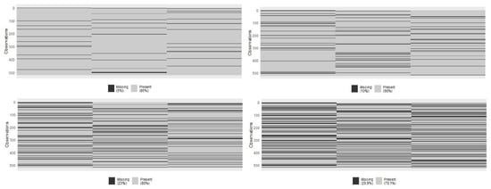 Additionally, sensitivity analysis was performed to assess the model’s robustness by varying the proportions of missingness across different percentages of missing data. Cross-validation was also conducted in [] for binary classification and regression approaches. Future research should include comprehensive sensitivity analyses to further explore the model’s reliability and robustness under diverse conditions, such as different random seeds and varying noise levels, while continuing to compare its performance to other approaches such as imputation or the removal of missing data, to ensure its effectiveness and adaptability in handling incomplete datasets.