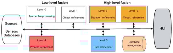 - Steinberg, A.N.; Bowman, C.L.; White, F.E.; Blasch, E.P.; Llinas, J. Evolution of the JDL Model. Perspect. Inf. Fusion 2023, 6, 36–40. [Google Scholar]