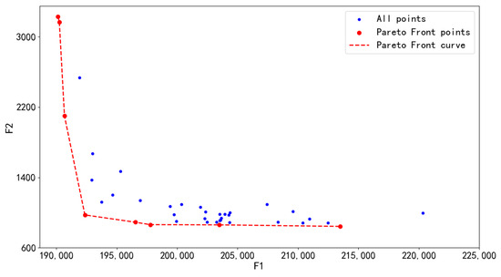 Subsequently, we obtained the Pareto front of the total flight distance and the equilibrium of flight distances among individual UAVs through multiple runs, as shown in Figure 34.