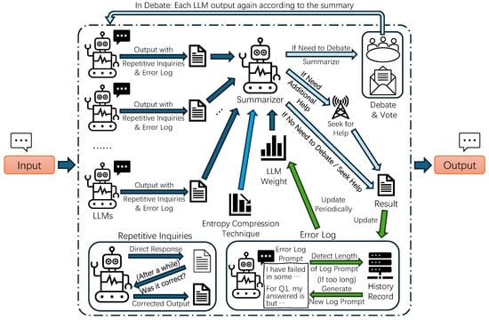 In this mechanism, the responses from each LLM are compared, and their reliability is evaluated based on the consistency and correctness of their outputs. A softmax function is employed to dynamically adjust the weight of each LLM’s contribution to the final decision, with models that consistently provide accurate responses being given higher weight. This process allows the system to balance the input from multiple models, reducing the influence of any single model that may exhibit hallucinations or biases.