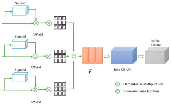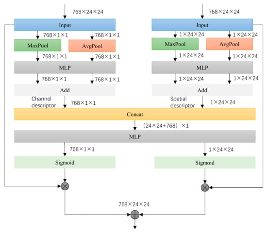 where and represent the spatial weight and channel weight, respectively, represents the sigmoid function, and is the final fused feature.