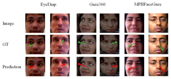 The data that support the findings of this study are openly available at https://gaze360.csail.mit.edu/ (accessed on 28 December 2023), https://www.idiap.ch/en/scientific-research/data/eyediap (accessed on 27 December 2023), and https://www.perceptualui.org/research/datasets/MPIIFaceGaze/ (accessed on 19 January 2024).