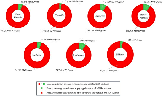Reduction in residential energy consumption of each island with incorporation of the optimal shading system (WSHA-5) in SFHs.