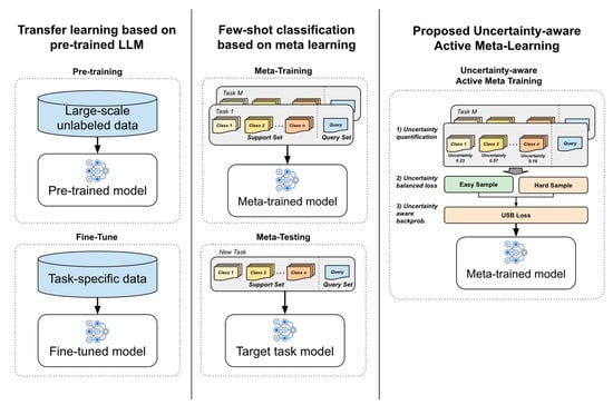 Several studies have explored uncertainty quantification in NLP, particularly leveraging Bayesian inference, probabilistic modeling, and ensemble methods [9,10,11,12], discussing the use of Bayesian inference, probabilistic modeling, and ensemble methods. However, most do not address the challenges of low-resource NLP scenarios. The primary contribution of this study is the extension of meta-learning techniques, previously focused mainly on computer vision, to the field of natural language processing to address this issue. This paper is expected to contribute to the following subject: