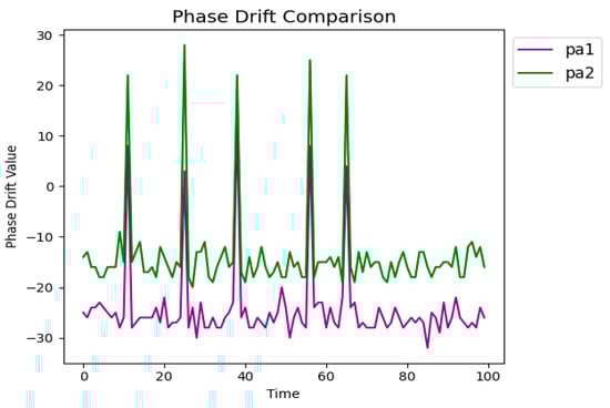 Comparative analysis of phase drift values over time for phase drift values.
