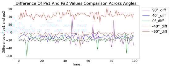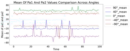 To better capture these angle-specific features, the mean of phase drift values ((pa1 + pa2)/2) and the difference between phase drift values (pa1 − pa2) were calculated. Calculating the mean helps reflect the general trend and combined effect of phase drift values, while the difference captures the unique interaction and divergence between them, reflecting the nuanced variations due to different angles. As shown in Figure 4 and Figure 5, the mean and difference in phase drift values across different datasets provide insights into their angle-specific patterns. The analysis revealed that phase drift values for different angles exhibit distinct characteristics, which are better captured by considering their mean and difference. These observations underscore the importance of using both the mean and difference values to capture angle-specific features more effectively. This approach leads to improved model accuracy, as the unique patterns for each angle are more distinctly represented compared to using the raw data alone.