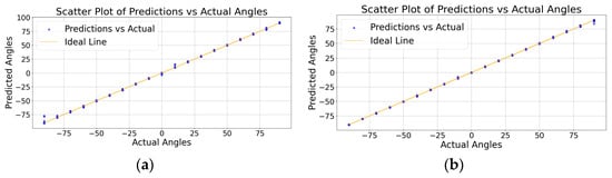 Comparison results of PLAE model predictions and actual angles: (a) before outlier removal and (b) after outlier removal.