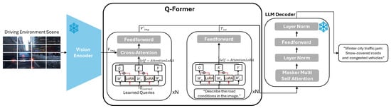 Our method effectively enhances BLIP-2’s capability to generate accurate and contextually rich captions for driving environment scenes. The generated caption dataset improves the model’s understanding of road-specific factors, while the optimized Q-Former facilitates better adaptation to autonomous driving environments. These improvements can contribute to the development of more interpretable and robust vision–language models, ultimately supporting safer and more efficient autonomous driving systems. The main contributions of this study are as follows.