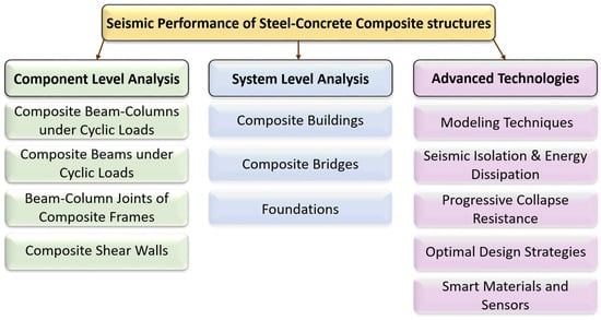 - The seismic performance of composite buildings: the advances in the seismic design of composite building structures are analyzed. The review focuses on the inelastic behavior of composite buildings where the evaluation of inelasticity at various levels of seismic intensity is significantly enhanced by seismic design approaches that allow for the control of structural deterioration at both the elemental scale (for instance, crucial structural parts) and the overall building scale (such as individual floors).
