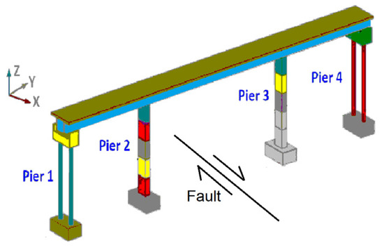 - Lin, Y.; Li, Y.; Zong, Z.; Bi, K.; Xing, K.; Li, Y. Numerical study of seismic performance of steel-concrete composite rigid-frame bridge with precast segmental CFDST piers crossing fault-rupture zones. In Structures; Elsevier: Amsterdam, The Netherlands, 2023; Volume 56, p. 105039. [Google Scholar]