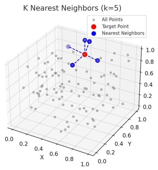 Among them, represents closest neighboring points of the point . KNN diagram is shown in Figure 3.