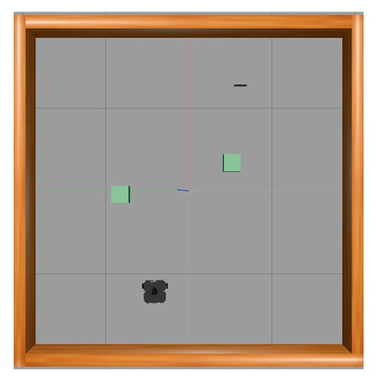 To verify the robot training results, we conducted a total of six experiments with different training iterations: untrained (0 iterations), 100 iterations, 200 iterations, 300 iterations, 400 iterations, and 500 iterations. The simulated training was designed in a sandbox environment, as shown in Figure 8 [17]. This approach prevents potential damage to the physical robot during the training process. Therefore, the TurtleBot3 in the Gazebo environment was used for training. Once the training achieves satisfactory performance, the results can be applied to the physical robot for validation [23].