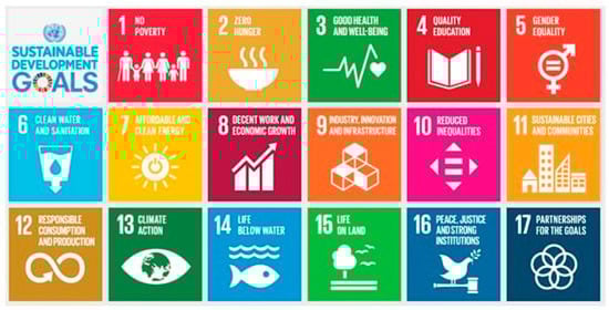 The 17 SDGs require a common understanding that all these overarching objectives should be treated as interlinked and interdependent [87,88,89]. Putting these objections into action is an attempt to steer the world on a more sustainable and transformative trajectory [89]. Figure 4 presents the 17 SDGs, which cover almost all areas of life [87].